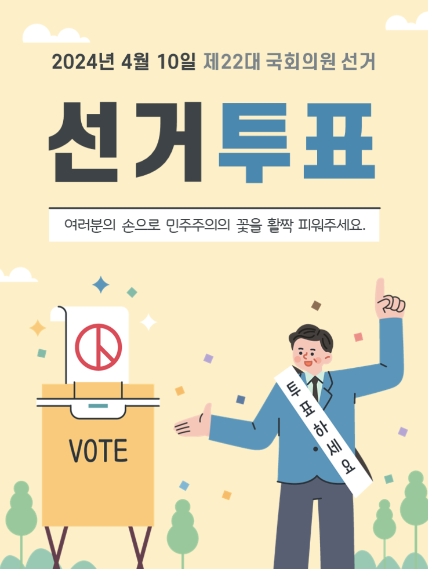 - 2024년 4월 10일은 제22대 국회의원선거가 실시되는 날입니다.